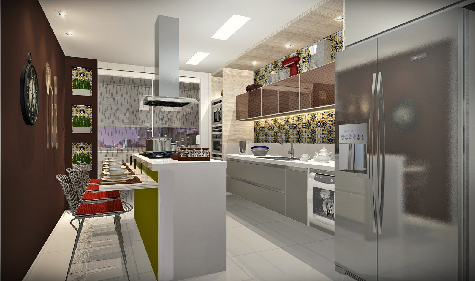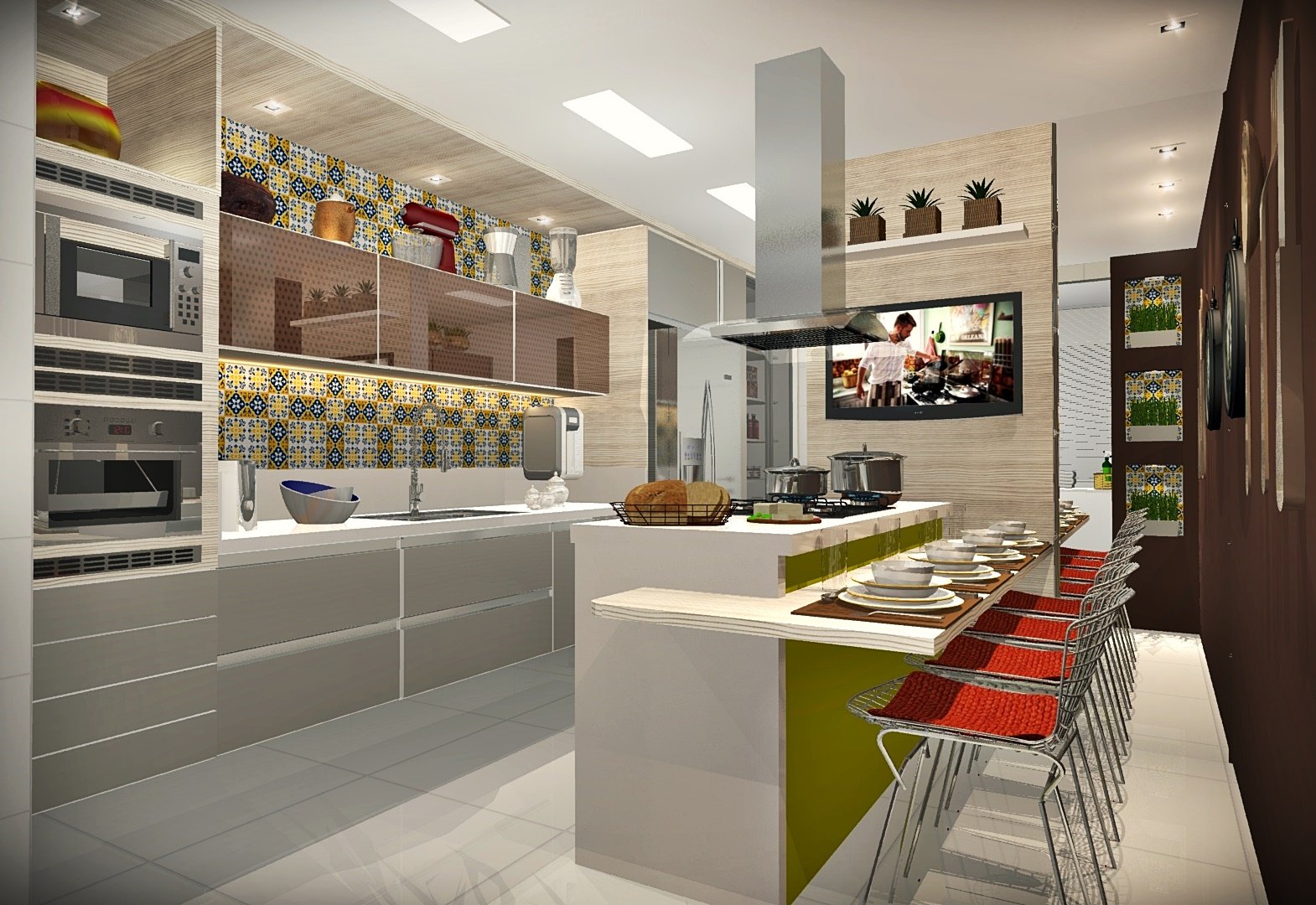 Este projeto foi desenvolvido especialmente para atender às necessidades de um casal com três filhos, que buscavam uma cozinha ampla e confortável para o convívio familiar. Para alcançar esse objetivo, optamos por integrar o quarto e banheiro de serviço, permitindo a criação de uma espaçosa ilha central com cooktops e coifa, onde as refeições da família podem ser preparadas e desfrutadas em um único espaço.